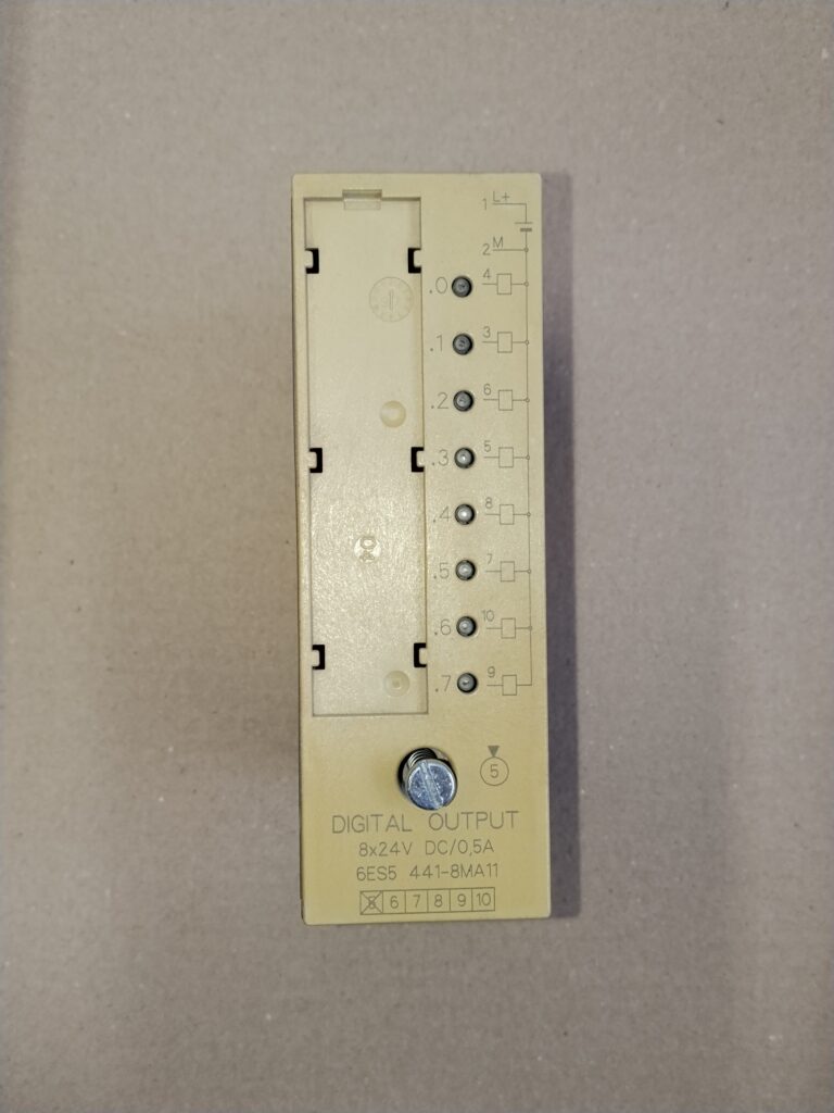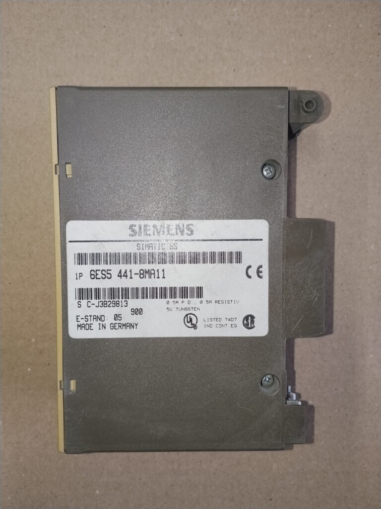 6ES5 441-8MA11 jest modułem cyfrowych wyjść Siemens SIMATIC S5 441, przeznaczony do sterowników PLC z serii S5. Moduł ten oferuje 8 wyjść cyfrowych o napięciu 24V DC i obciążalności 0.5A na każde wyjście.
