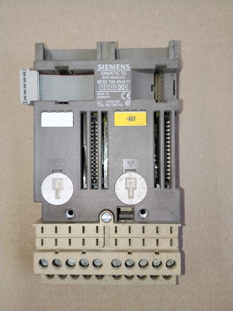 Siemens 6ES5 700-8MA11 to moduł magistrali (bus unit) przeznaczony dla systemów sterowania przemysłowego SIMATIC S5. Służy do podłączenia modułów wejść/wyjść (I/O) do jednostki centralnej PLC (Programmable Logic Controller).